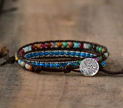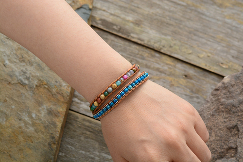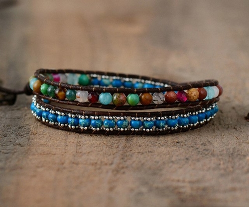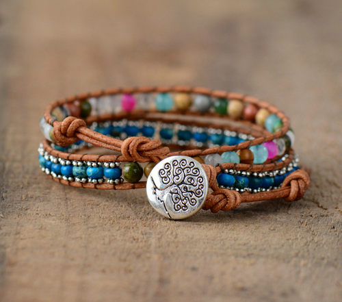 Dropship Leather Bracelets Colorful Natural Stones 2