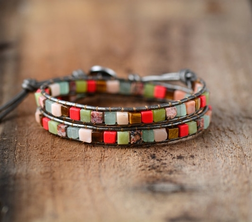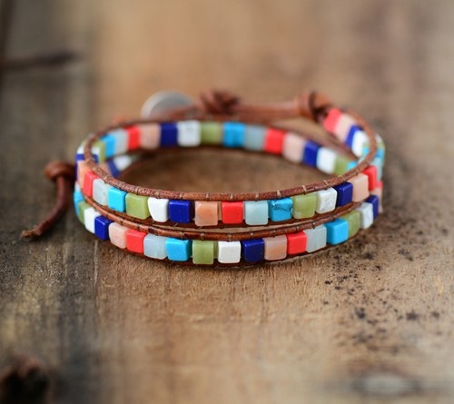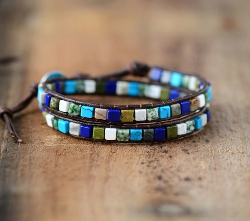 Dropship Leather Bracelets Mix Square Natural Stones 2