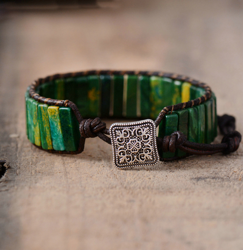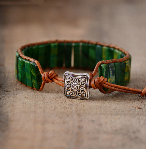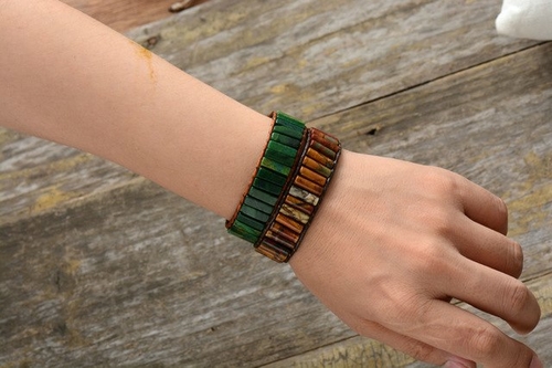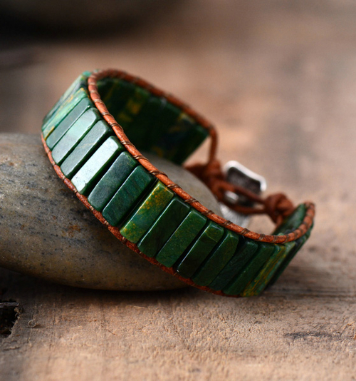 Leather Wrap Bracelet Handmade Natural Stone Tube