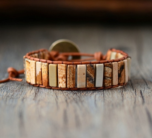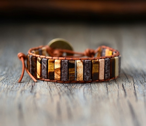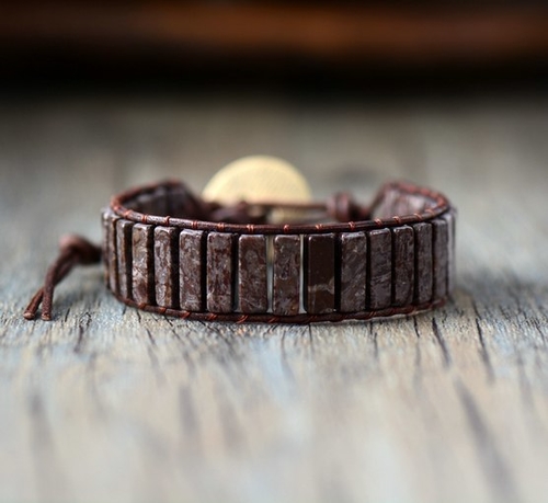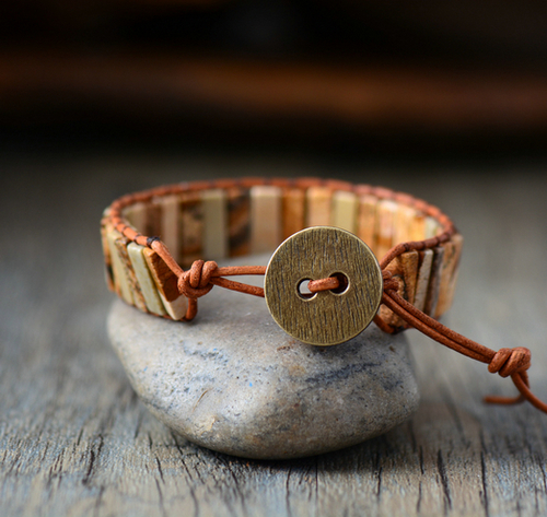 Leather Wrap Bracelet Unqiue Natural Stone Single