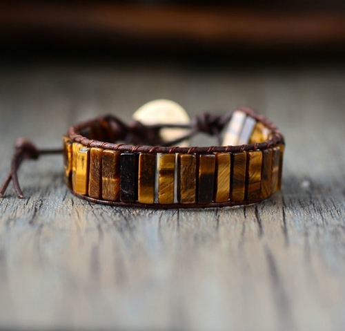 Dropship Leather Wrap Bracelet Unqiue Natural Stone Single