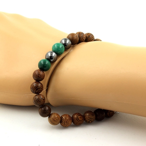 Dropship Malachite from Congo + Lavender Chalcedony + wood Bracelet 8 mm Beads.