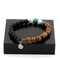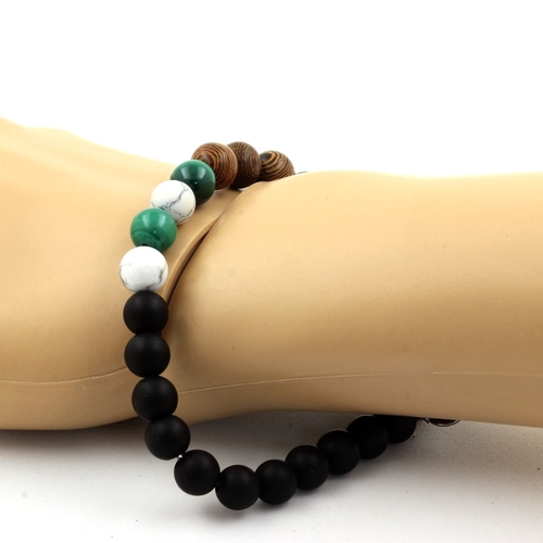 Malachite from Congo + Howlite + Matte Black Onyx + Wood Bracelet 8 mm Beads.