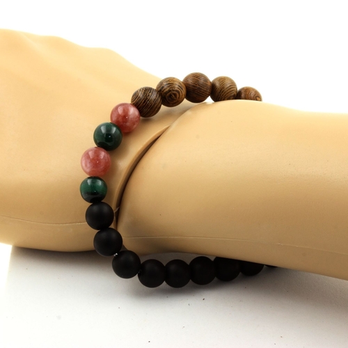 Malachite from Congo + Sunstone + Matte Black Onyx + Wood Bracelet 8 mm Beads.