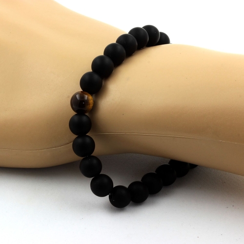 Matte Black Onyx + Tiger Eye Bracelet 8 mm Beads. Length 19-20 cm. Comes in a box pouch. We can make it to your length on request. Made in France in our A Bijoux workshop.