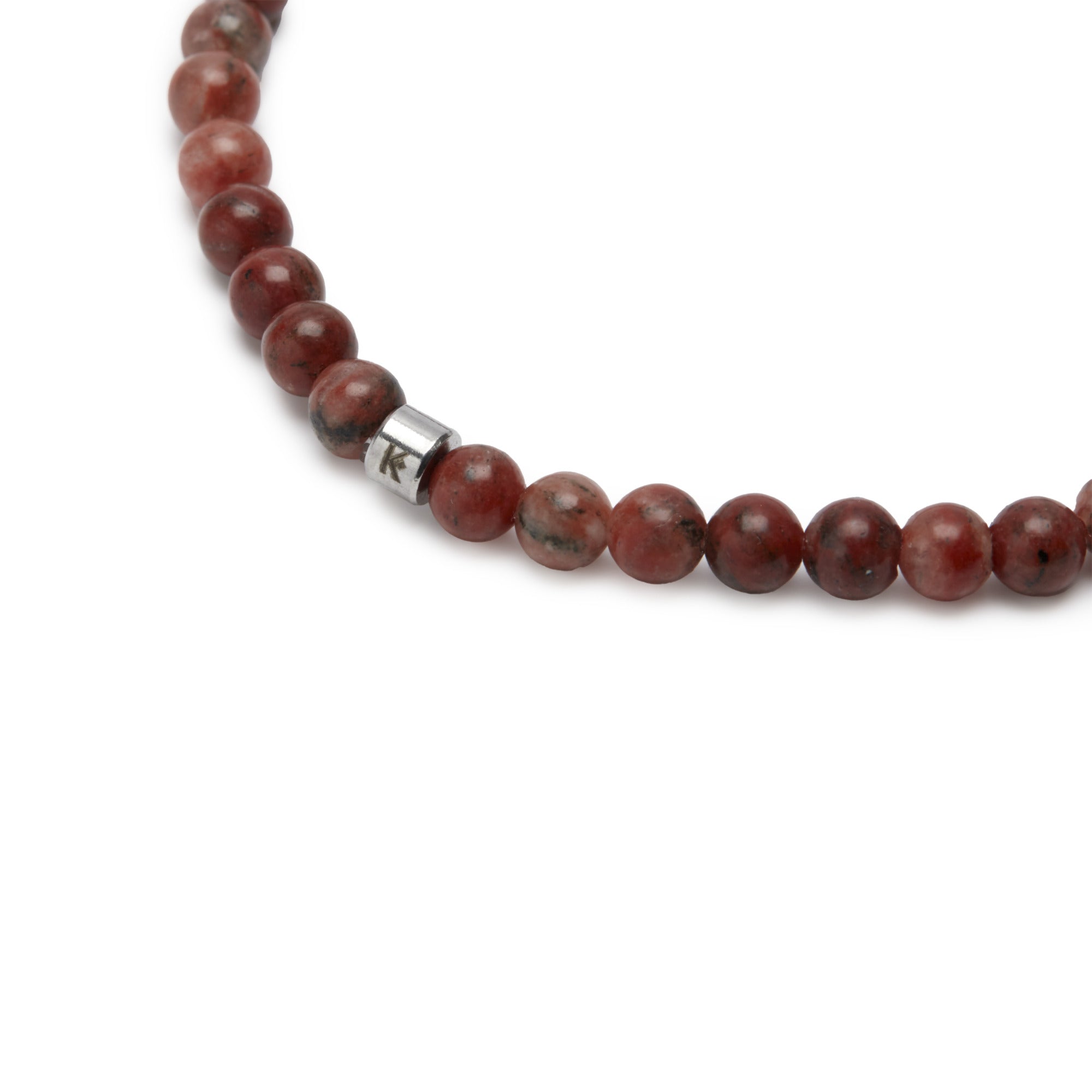 Le Mini Bracelet en Jaspe Rouge 'Energie' se distingue par son design unique. Chaque pièce est conçue avec soin, intégrant des pendentifs et des stoppeurs qui reflètent nos valeurs et notre désir de diffuser beauté et bonnes énergies. Le bracelet est orné d'un 'K' distinctif gravé sur une perle, ajoutant une touche personnelle à votre accessoire.