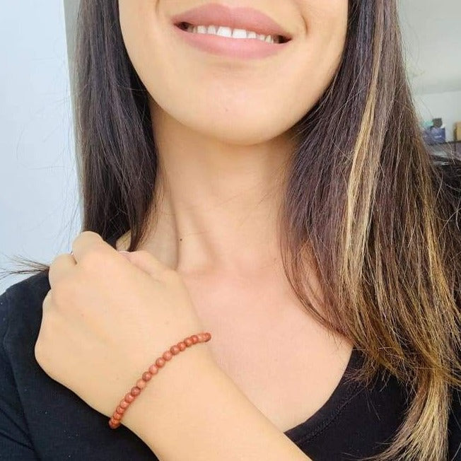 Le Mini Bracelet en Jaspe Rouge 'Energie' est un accessoire essentiel pour ceux qui cherchent à retrouver leur ancrage et à cultiver l'équilibre dans leur vie quotidienne. Fabriqué à partir de jaspe rouge, une pierre reconnue pour ses propriétés revitalisantes, ce bracelet est conçu pour vous aider à vous connecter aux forces nourricières de notre planète.