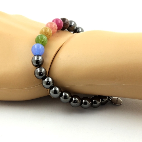 Multicolor Tourmaline + Hematite Bracelet 8 mm Beads.