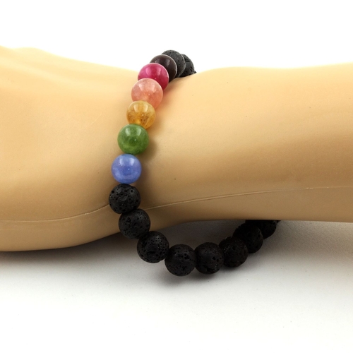 Multicolor Tourmaline + Lava Bracelet 8 mm Beads.
