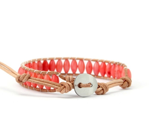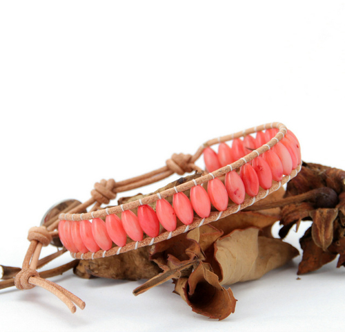 Dropship Natural Rice Shape Coral Stone Leather Bracelet