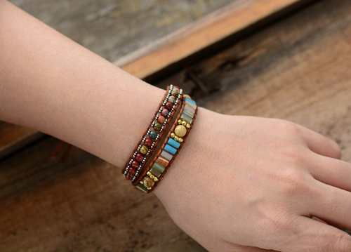 Dropship New Leather Bracelets Natural Stones Crystal 2