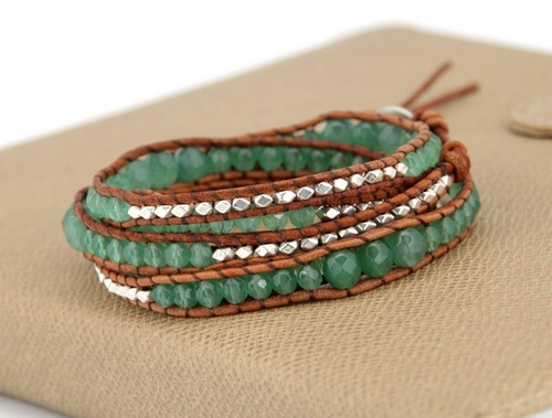 • inspirational leather bracelets: wrap bracelet with stones