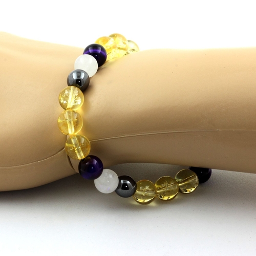 Purple Tiger's Eye + Citrine + Moonstone + Hematite Bracelet 8 mm Beads.