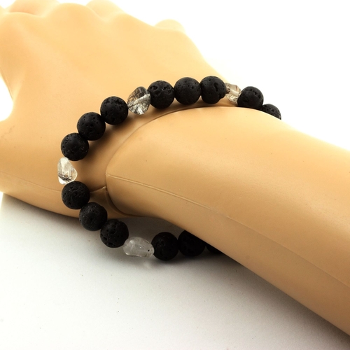 Quartz with Tourmaline inclusions from Brazil + Lava Bracelet 8 mm Beads.