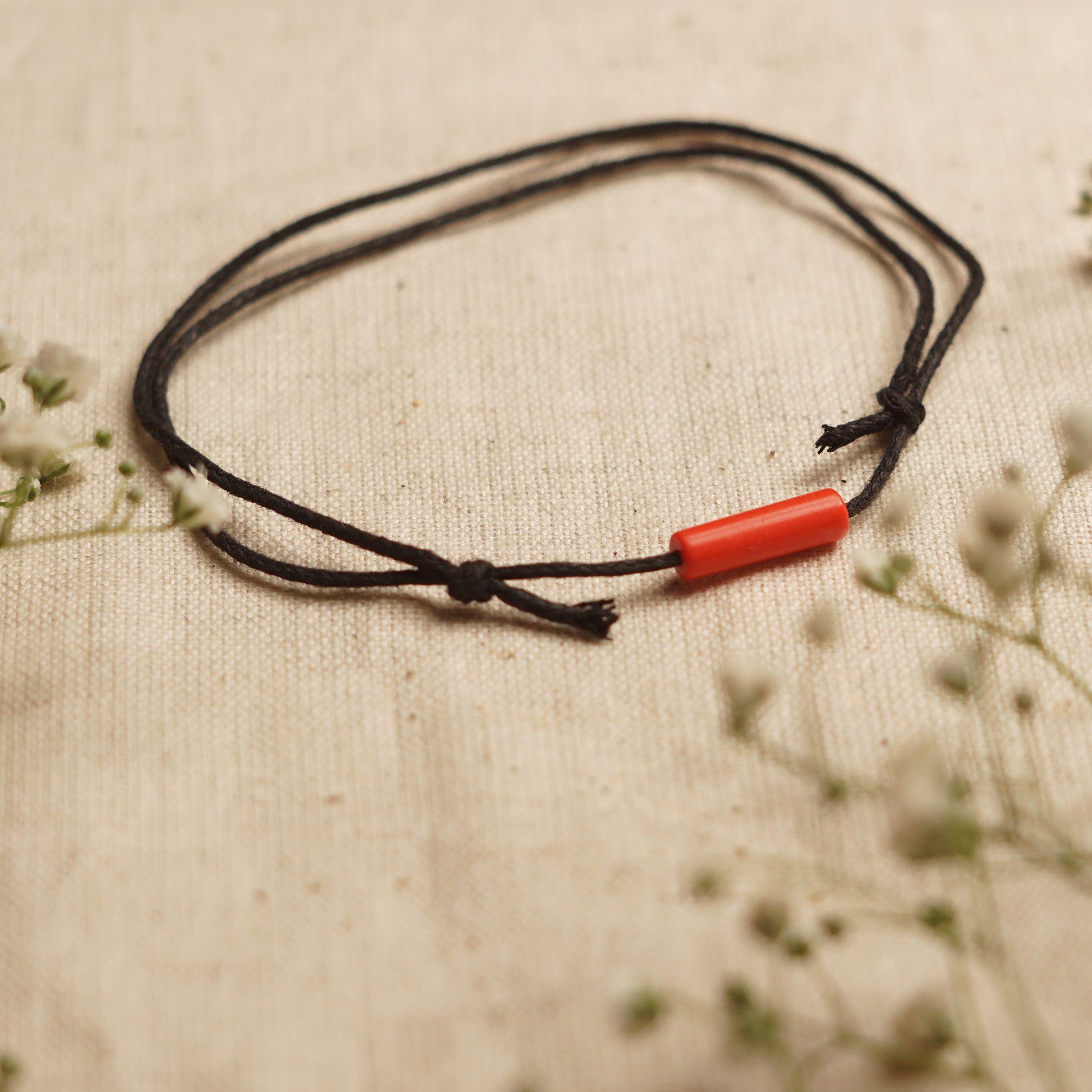 Made with high-quality waxed cotton cord, this anklet is designed to withstand daily wear. The durability of the materials ensures that your anklet will last, maintaining its beauty and integrity over time. The red coral bar adds a pop of color and a touch of natural beauty, making it a standout piece in your jewelry collection.