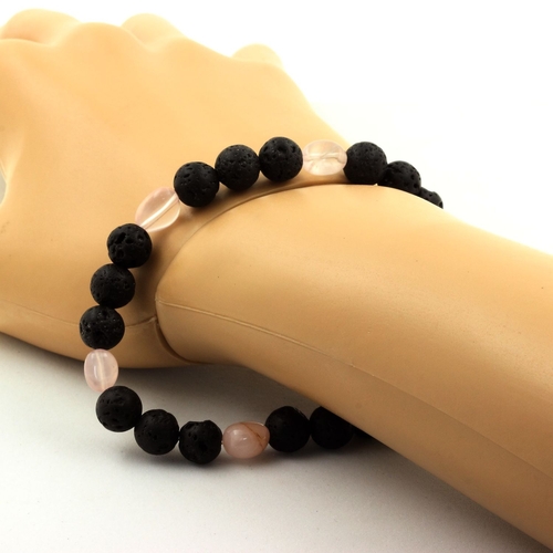 Rose Quartz from Brazil + Lava Bracelet 8 mm Beads.