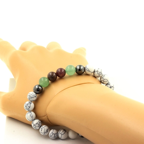 Ruby from Mogok, Burma, Myanmar + Aventurine + Hematite + Howlite Bracelet 8 mm Beads.