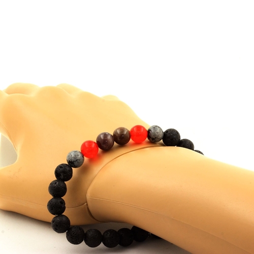 Ruby from Mogok, Burma, Myanmar + Red Chalcedony + Snowflake Obsidian + Lava Bracelet 8 mm Beads.
