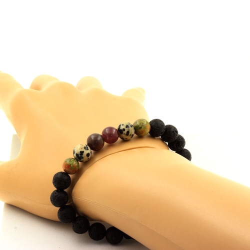 Ruby from Mogok, Burma, Myanmar + Unakite + Dalmatian Jasper + Lava Bracelet 8 mm Beads.