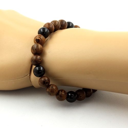 Schorl Tourmaline from Brazil + wood Bracelet 8 mm Beads.