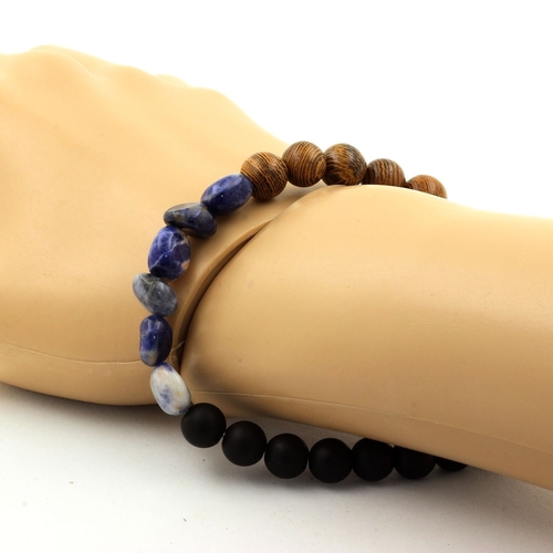 Dropship Sodalite from Brazil + Matte black Onyx + wood Bracelet 8 mm Beads.