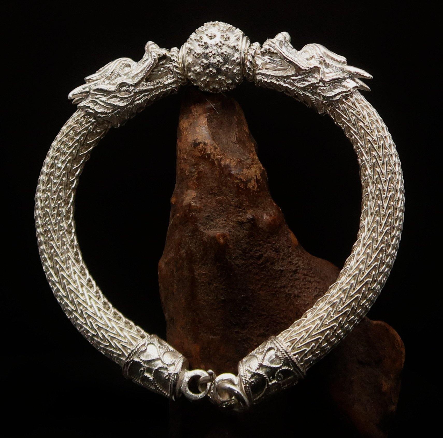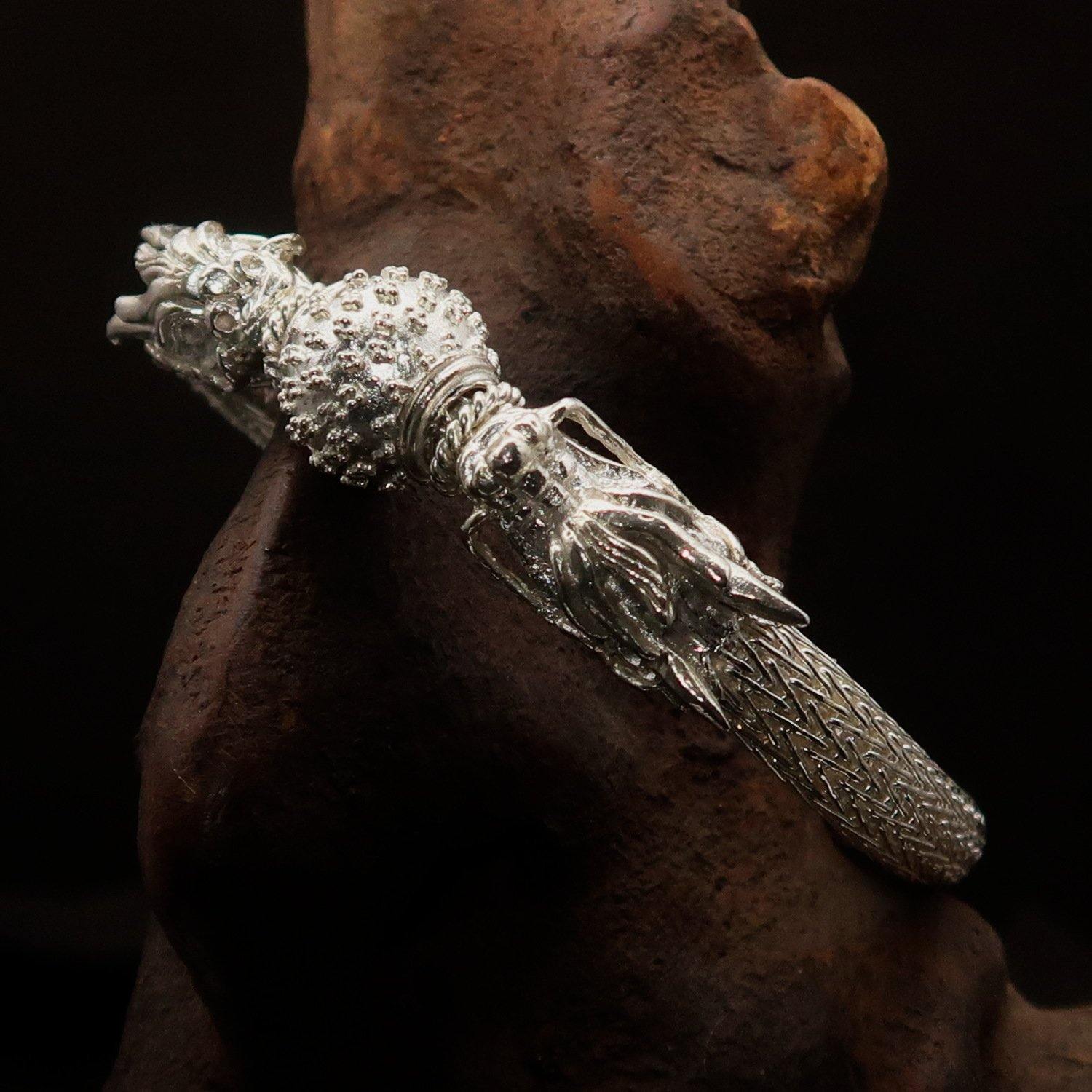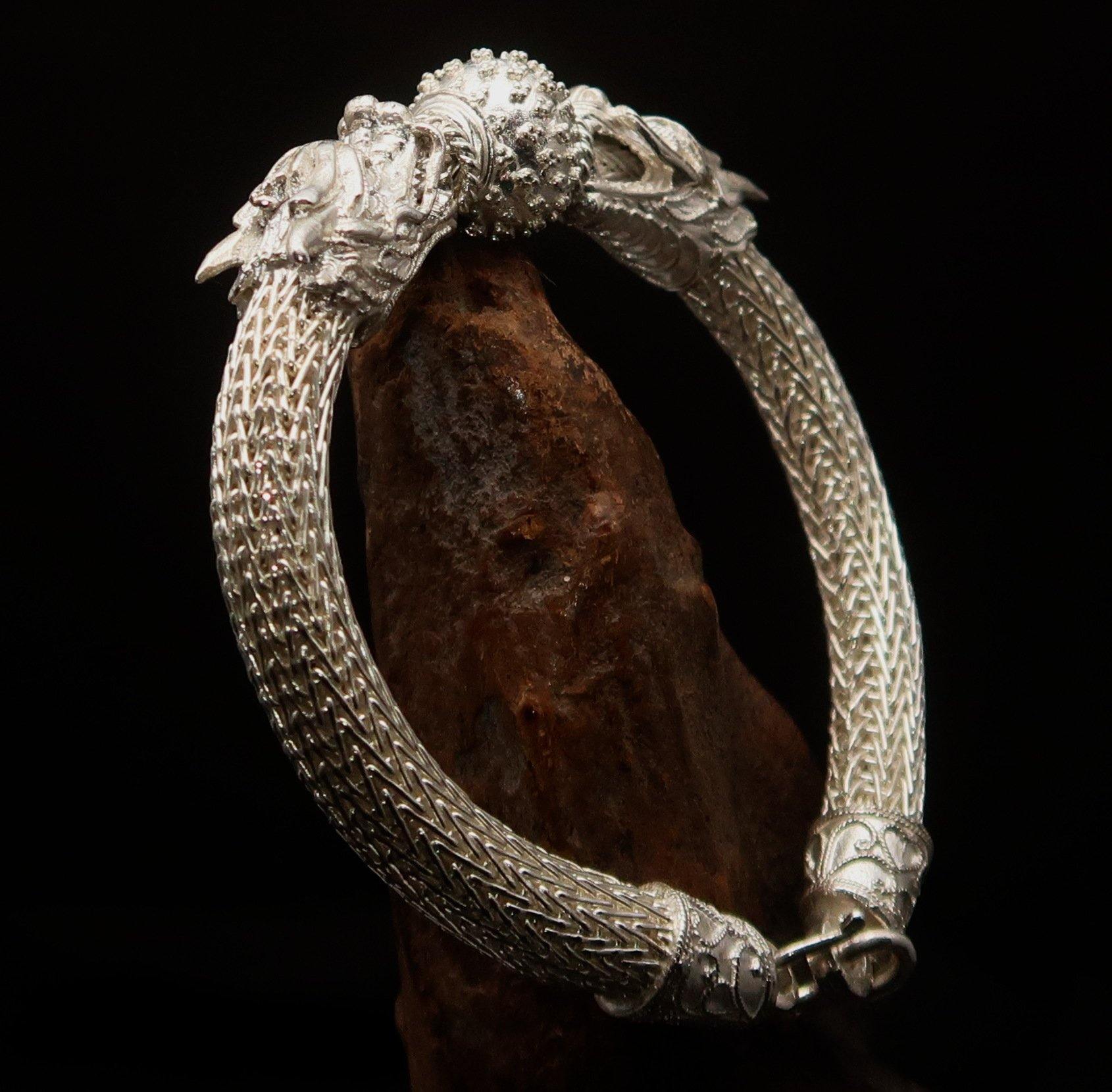 Designed with comfort in mind, the Sterling Silver Two Dragon Ball Bracelet features a width of 14 mm at its widest point, which is the ball situated between the two dragon heads. The chain has a diameter of 8 mm, providing a comfortable fit for daily wear. Whether you’re dressing up for a special occasion or looking for an everyday accessory, this bracelet is versatile enough to complement any outfit.