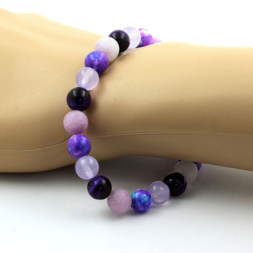 Purple Tiger's Eye + Blue Purple Jasper + Lavender Chalcedony + Matte Purple Mica Bracelet 8 mm Beads.