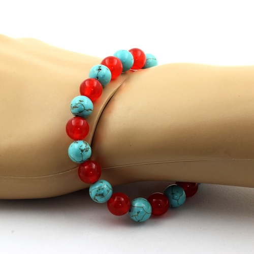 Turquoise + Red Chalcedony Bracelet 8 mm Beads.