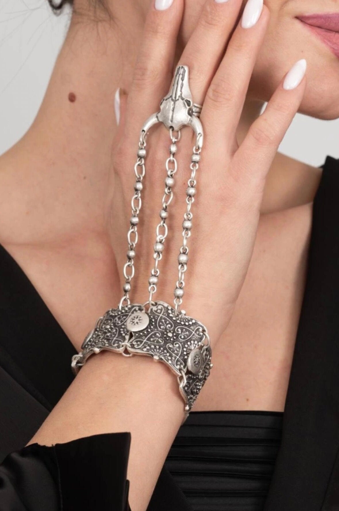 Looking for the perfect gift for a friend or loved one? This unique hand chain makes an excellent choice for birthdays, anniversaries, or any special occasion. Its adjustable fit and stylish design ensure that it will be appreciated by anyone who receives it. Plus, the connection to pagan culture adds a thoughtful touch that shows you care.