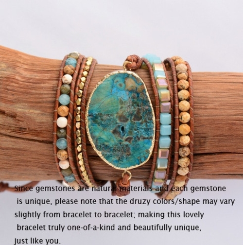 Dropship Women Leather Bracelet Unique Mixed Natural Stones