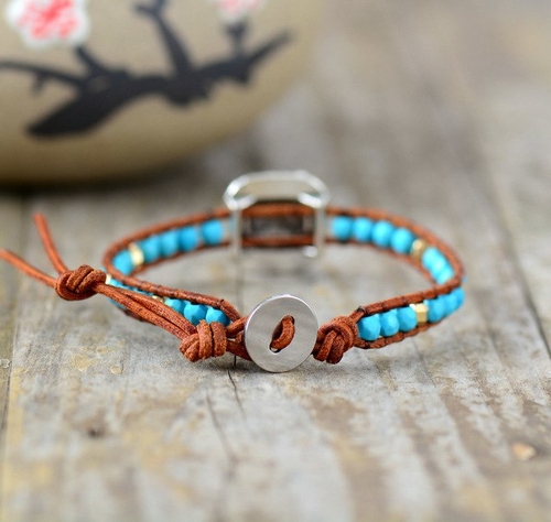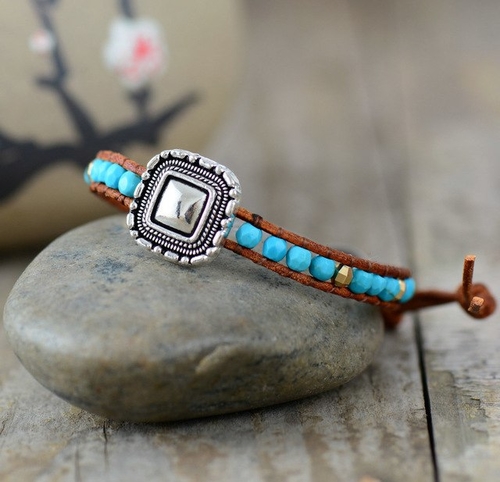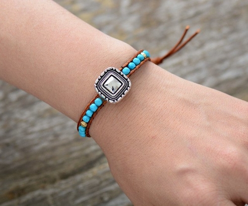 Dropship Women Leather Bracelet Unique Stone with Antique