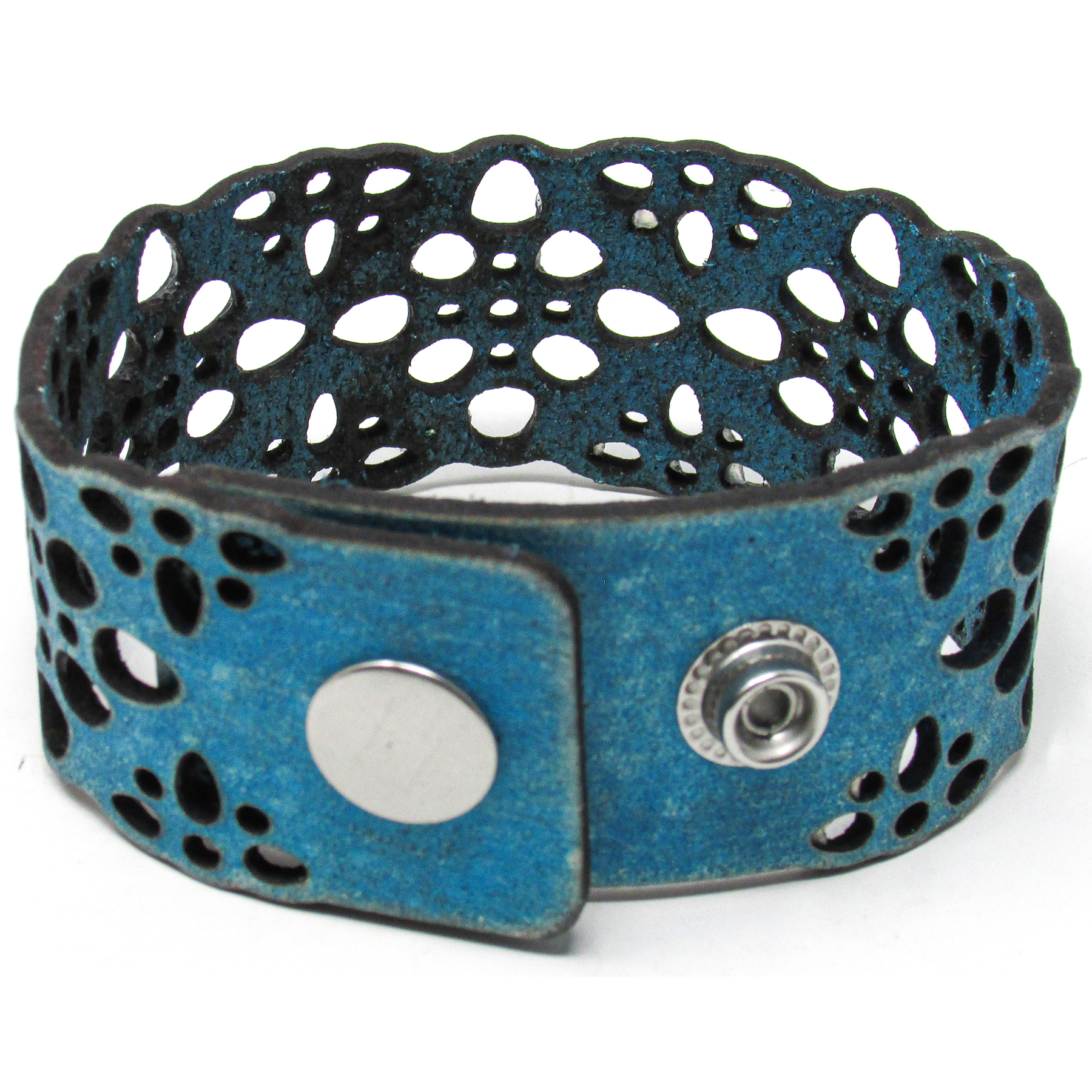Women's Leather Bracelet featuring a Boho cut pattern, made of 100% cowhide leather with stainless steel snaps.