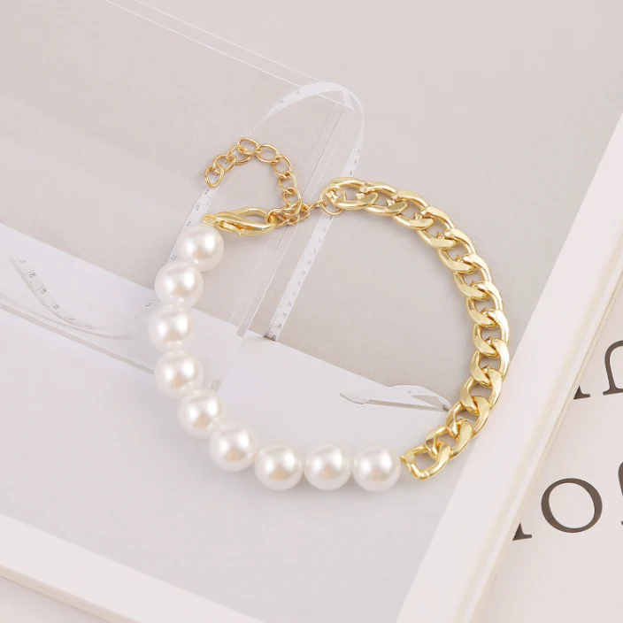 The bracelet's design is what sets it apart. The half faux pearl beaded section offers a classic and timeless appeal, while the half chain adds a contemporary twist. This combination makes it suitable for both casual and formal settings, allowing you to express your personal style effortlessly.