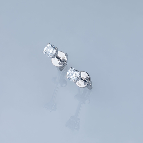 14K White Gold Earring Studs with 2 Round-Cut Lab-Created Diamonds