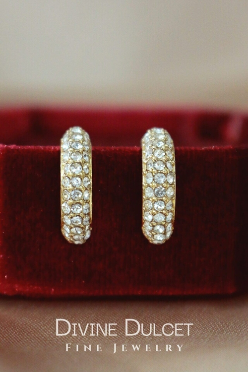 Rounded gold ear cuff with pave style colorless cubic zirconia inlays.
