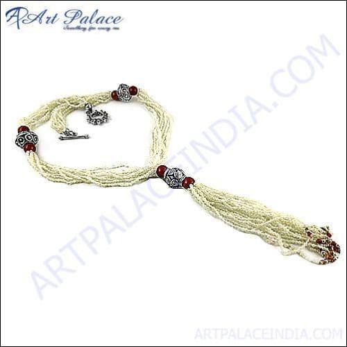 Elegant 925 Silver necklace featuring rainbow moonstone and red onyx gemstones, handcrafted by Art Palace, Jaipur.