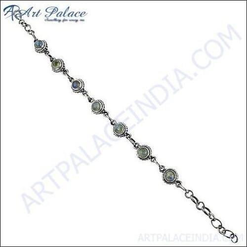 Dropship 925 Sterling Silver Rainbow Moonstone Bracelet - Plain & Adorable