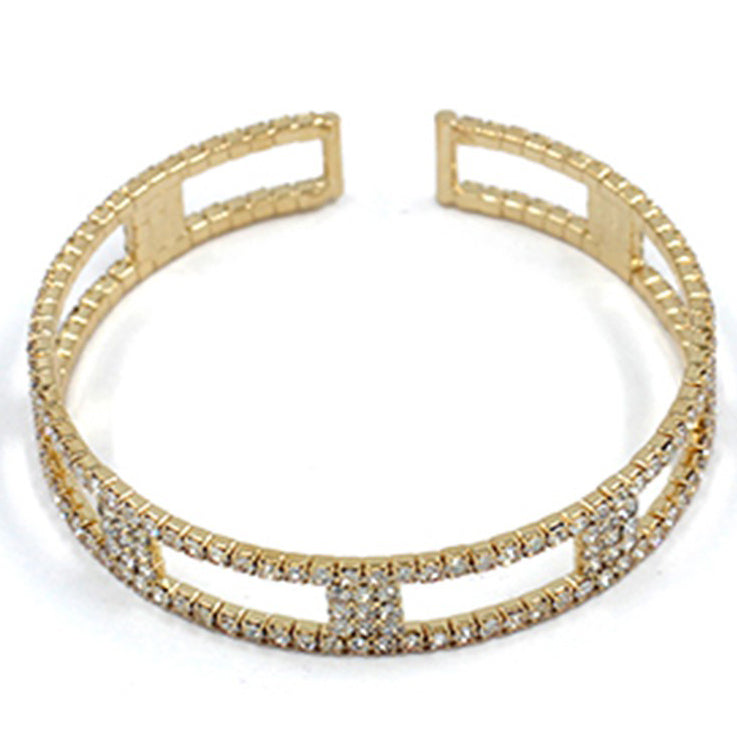 The Adjustable Cuff Wrap Crystal Bracelet is a stunning piece of jewelry that combines elegance and versatility. This bracelet is designed to fit comfortably on any wrist size, thanks to its adjustable cuff design. Whether you're dressing up for a special occasion or looking to add a touch of sparkle to your everyday outfit, this bracelet is the perfect accessory.