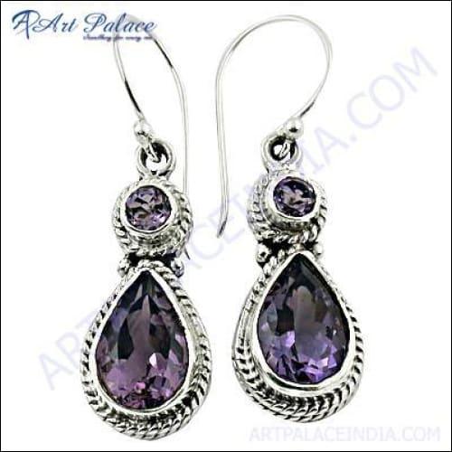 Dropship Adorable Indian Amethyst Gemstone 925 Silver Designer Earrings