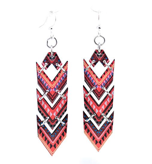 African Chevron Earrings #1533 featuring intricate laser-cut wood design, hypoallergenic stainless steel ear wires, and a natural wood back.