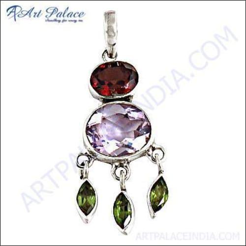 Introducing the exquisite Amethyst, Garnet, and Peridot Gemstone Silver Pendant, a stunning piece that effortlessly combines elegance and natural beauty. Handcrafted with precision, this pendant showcases the mesmerizing colors of amethyst, garnet, and peridot gemstones, all set in high-quality 925 sterling silver. This pendant is not just a piece of jewelry; it is a statement of style and sophistication.