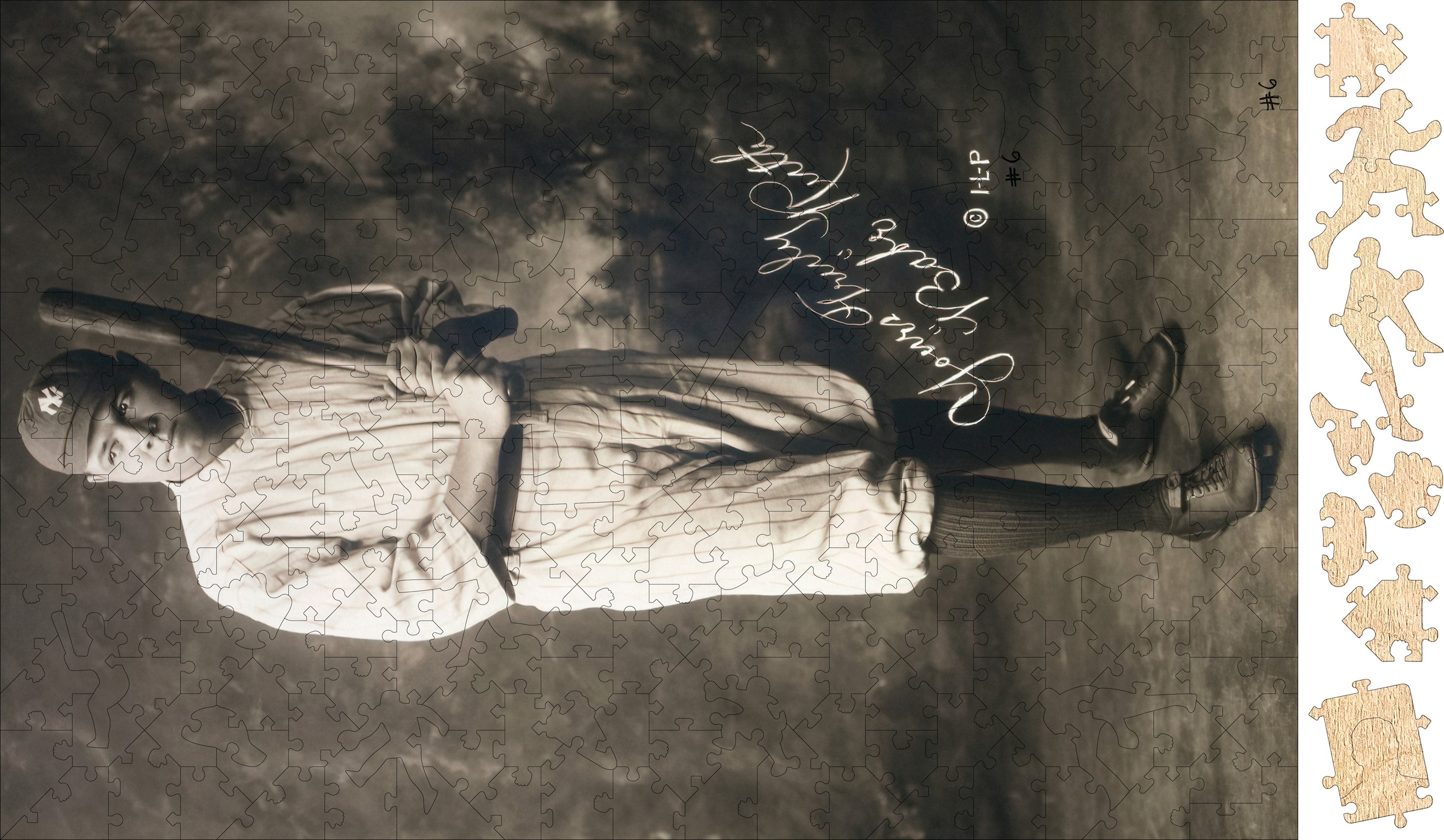 The Babe Ruth Puzzle is available in two premium material options: laser-cut birch wood and eco-friendly recycled office paper. The birch wood option features a natural vintage quality, with neutral wood undertones that enhance the classic look and feel of the puzzle. Each piece is precision-cut from 1/8 inch thick wood, ensuring smooth and easy assembly. Once completed, the puzzle can be framed and hung as a stunning piece of art.