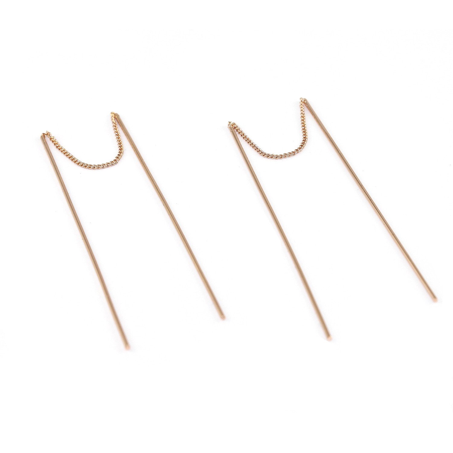 The Bar and Chain Threader Earrings feature a smooth bar that elegantly threads through your earlobe, creating a striking visual effect. The dainty chain adds a touch of sophistication, making these earrings a must-have accessory for fashion-forward individuals. Whether you wear them alone or layer them with other earrings, they are sure to make a statement.