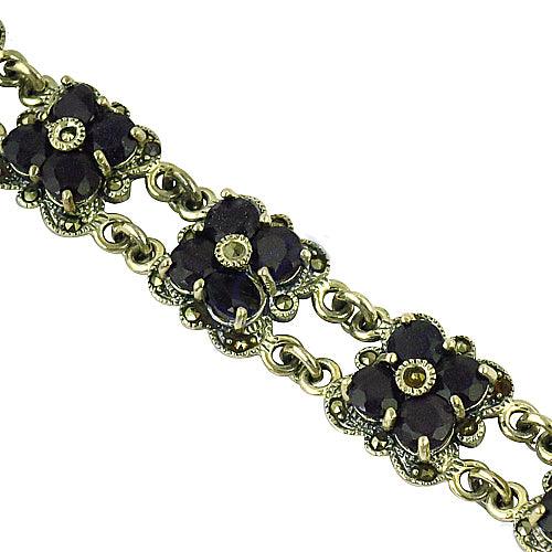 Beautiful Antique Style Blue Sandstone & Gunmetal Gemstone 925 Silver Bracelet showcasing intricate craftsmanship and elegant design.