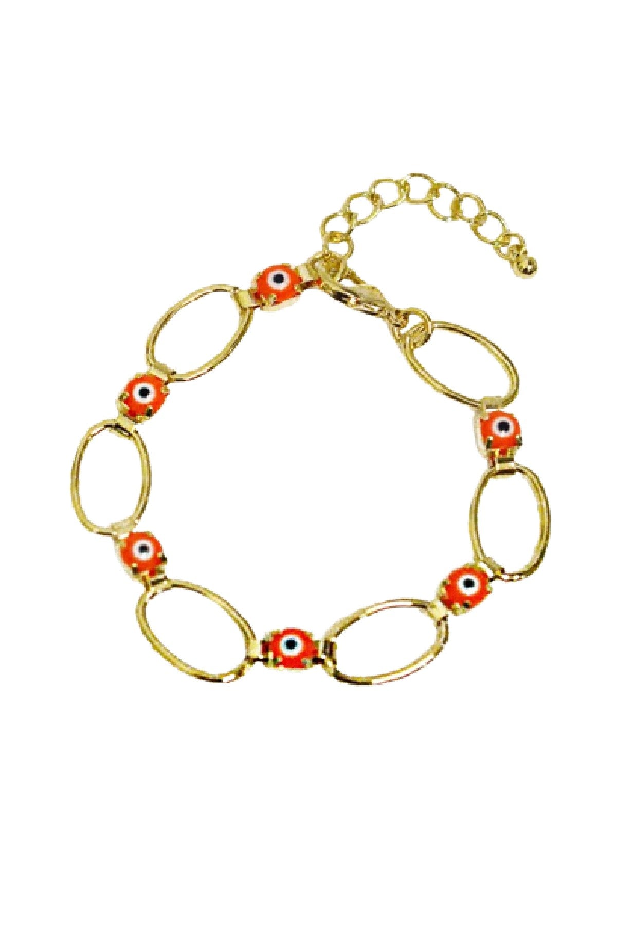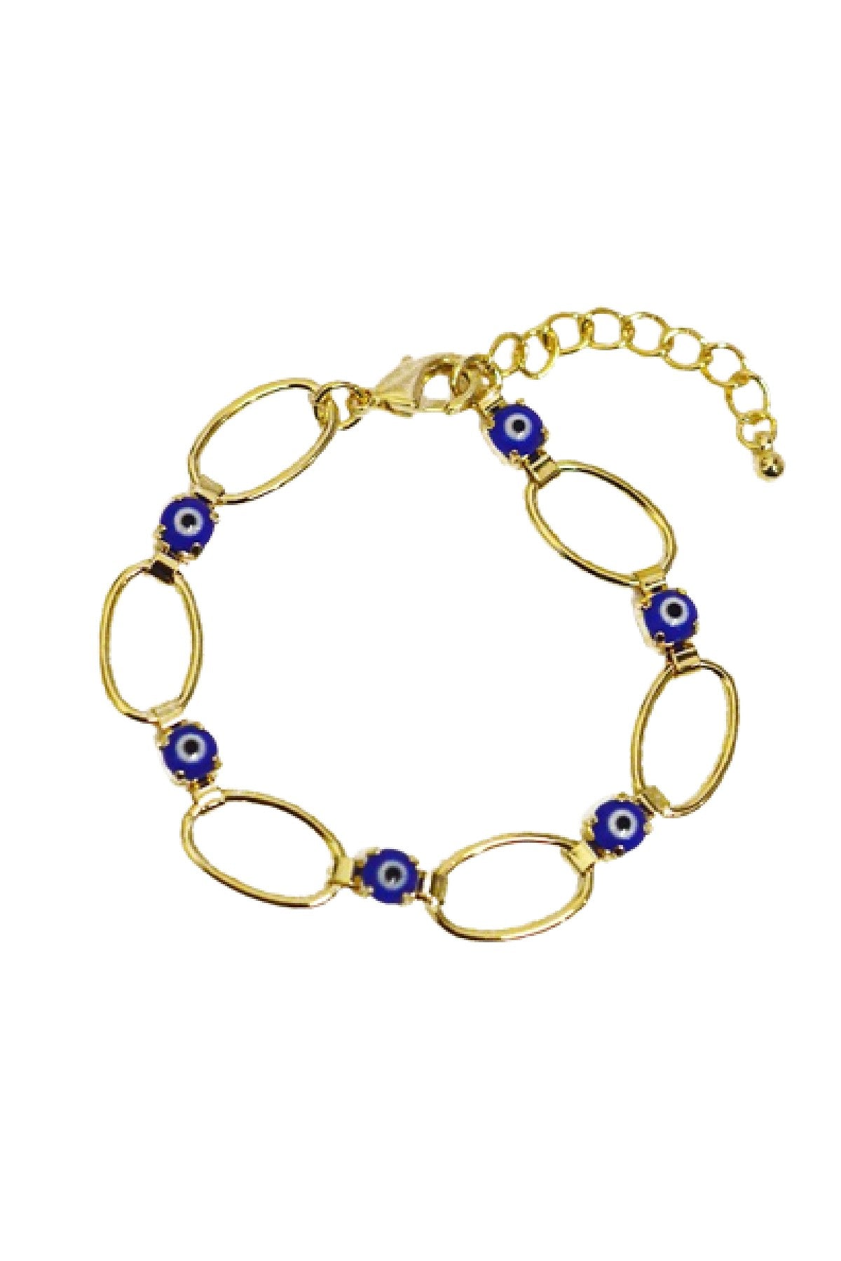 Crafted with precision, the Bella-K Evil Eyes Beads Link Bracelets feature a gold-plated finish that adds a touch of luxury. The gold plating not only enhances the visual appeal but also ensures durability, allowing you to wear this bracelet on various occasions without worrying about wear and tear. The bracelet measures 7 inches in length and 1.5 inches in width, making it a perfect fit for most wrist sizes.