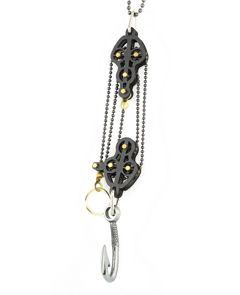The Block and Tackle Pulley Hook Necklace 7004E is a unique and stylish accessory that combines functionality with artistic design. Made in the U.S.A., this necklace is not just a piece of jewelry; it is a conversation starter and a functional tool. With its intricate design and practical features, it stands out in any jewelry collection.