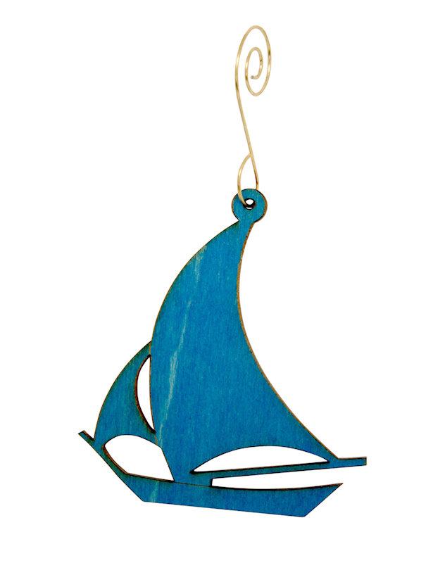 Boat Ornament #9920 made from eco-friendly birch wood, featuring intricate laser-cut details and a stylish nautical design.