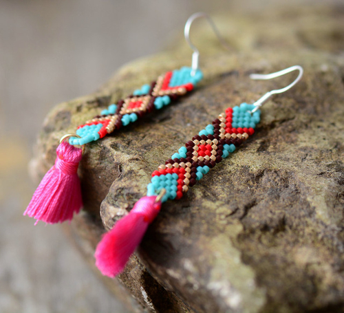 Boho Tassel Earrings Colorful Glass Seed Beads