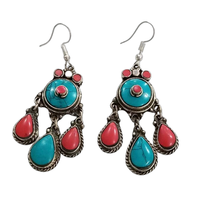 The tear drop shape of these earrings is not only stylish but also flattering for all face shapes. The combination of Tibetan beads and oxidised silver creates a beautiful contrast that catches the eye. Available in three vibrant colors, these earrings can easily complement any wardrobe, whether you're dressing up for a special occasion or adding flair to your everyday look.