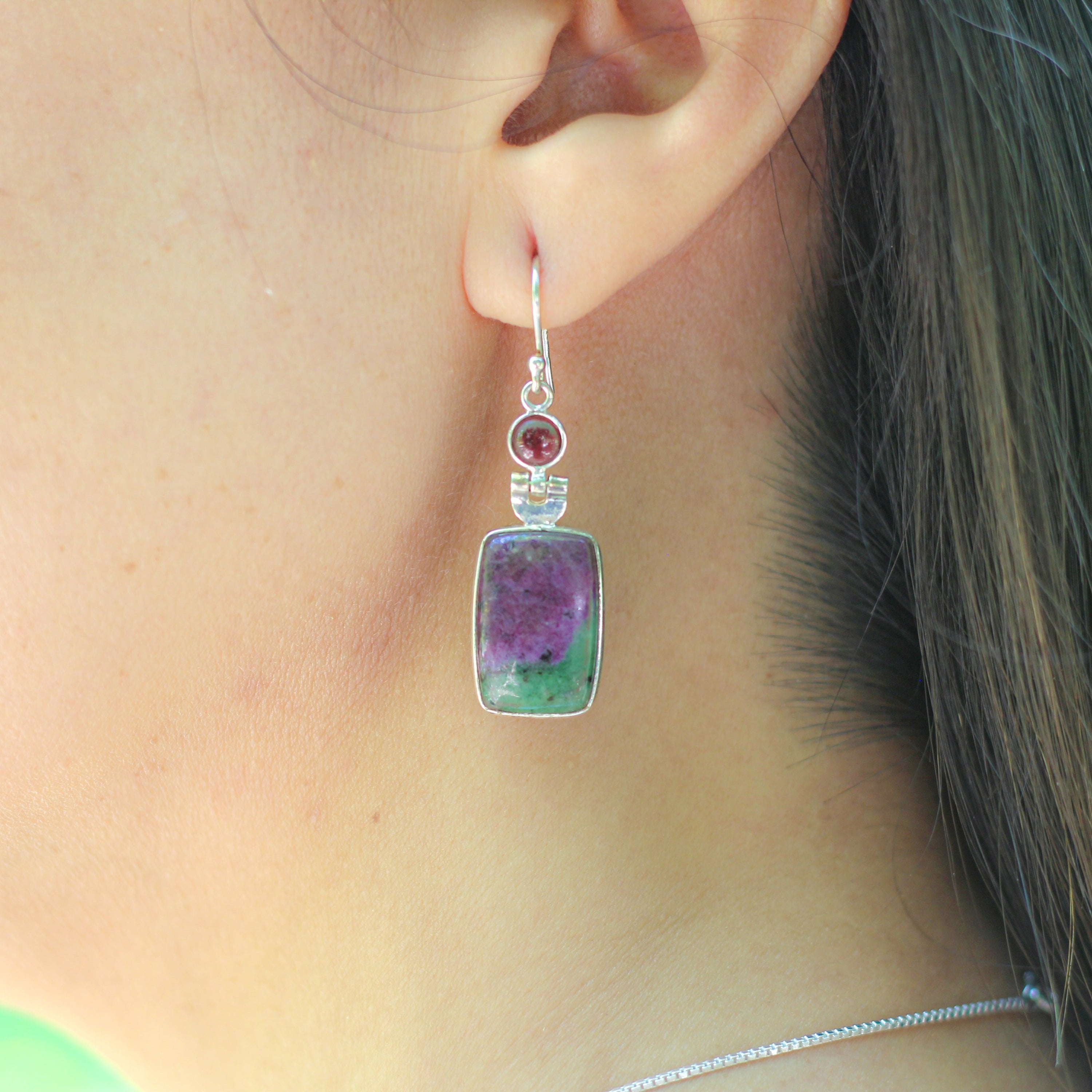Dropship Boucles d'oreilles "Voie du Coeur" en Rubis Zoisite et Argent 925